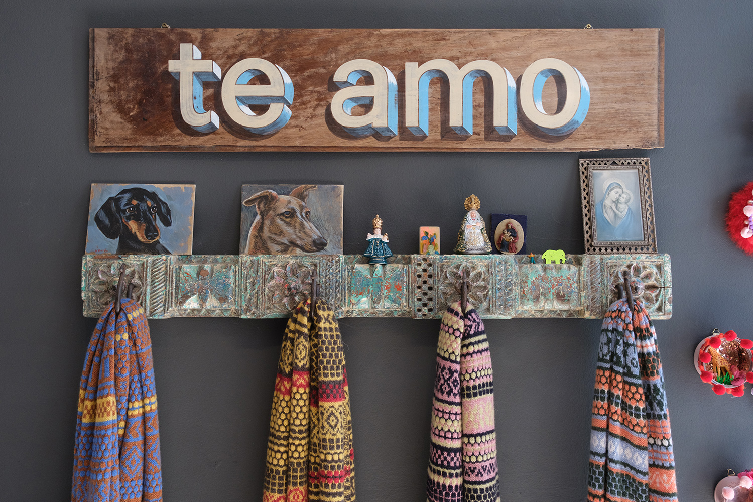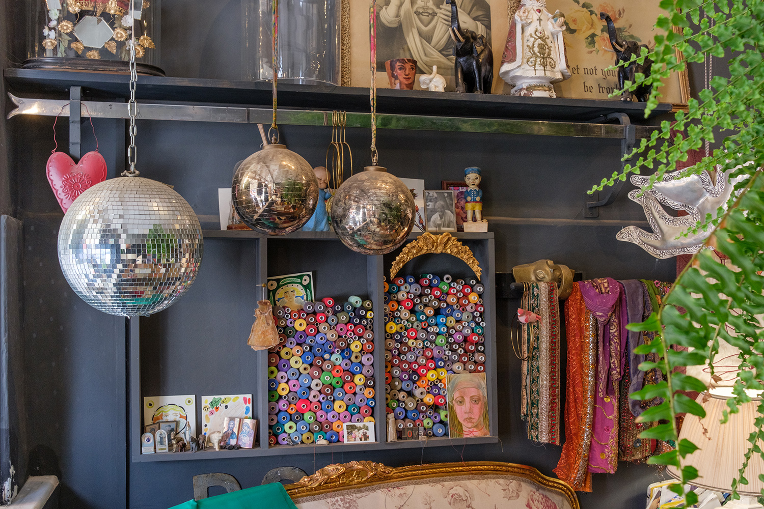 She delights in providing a made to measure service, taking a plethera of measurements and guiding clients through the swatches of colours for the wools and the velvets for the buttons.